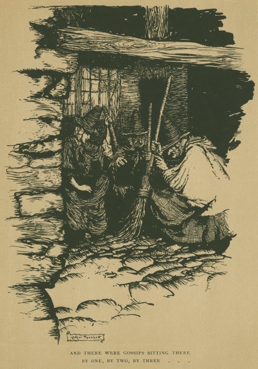 Arthur Rackham, And there were gossips sitting there by one, by two, by three.... (The witches' frolic)